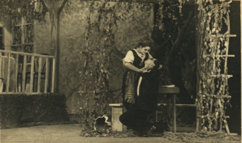 Другою, помітною, виставою в репертуарі стала комедія Корнійчука “В степах України”, де Василь Симчич грає Часника. Тоді ж, 1945 року, майбутній ректор київського театрального інституту Семен Михайлович Ткаченко, якого відповідні органи надіслали до Галичини задля укріплення ідеологічних і художніх позицій театру, поставив у Коломиї перлину російської класичної драматургії - “Грозу” Островського. Це, до речі, було першим - і успішним - зверненням театру до російської класики. Хормейстер і диригент театру Роман Рубінгер сповнив виставу російськими народними піснями. Центральну роль Катерини з успіхом, за свідченням критики і глядачів, зіграла дружина Дмитра Пихтіна Олена Самохіна. На жаль, про особливості виконання нам нічого не відомо. Самий же режисер, у чергу із Семеном Ткаченком, виконав роль Тихона Кабанова. Критика помітила творче зростання молодих акторів Оксани Затварської в ролі Варвари та Василя Симчича, який “в ролі Бориса позбавився властивих йому недоліків: “перебільшення, зайвої театральної неприродної патетики…” А ось артист Цикаленко в ролі Дикого “виглядав занадто метушливим”. “Хвацькості не вистачало І.Остаповичу в ролі Кудряша. В цілому ж критик вважає, що “режисер С.М.Ткаченко багато зробив у виставі і як досвідчений педагог, і як талановитий режисер”. |