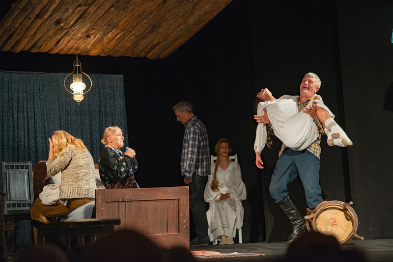 У центрі п’єси має бути матір, яка дуже мало говорить, а не побутові епізоди. Актори колоритні, чудово грають, вони на авансцені, а вона на їх фоні губиться. Хоч насправді саме вона це все переживає! Треба було маму інакше розмістити, підняти, щоб її бачили глядачі. Щоб було видно, що вона лежить, помирає і спостерігає за дітьми – це пияцтво, цю фальш між доньками… Оце треба грати, це повинно відбуватися на її очах, а вона чомусь лише в окремі моменти вступає. Це головне, а не оті побутові сценки.