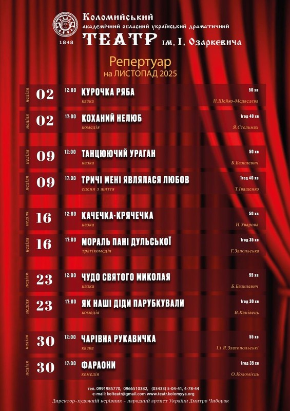 Вітаємо на офіційній веб-сторінці першого українського театру на західноукраїнських землях, одного із найстаріших театрів України - Коломийського академічного обласного українського драматичного театру імені Івана Озаркевича.